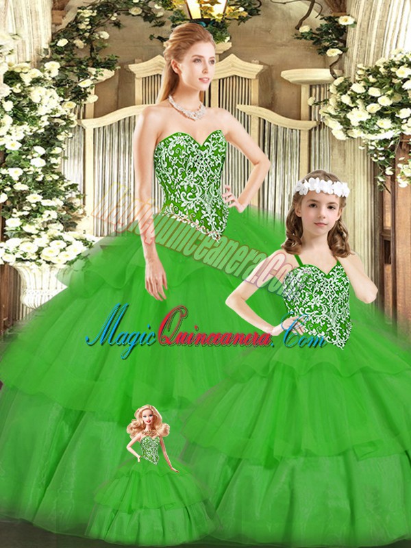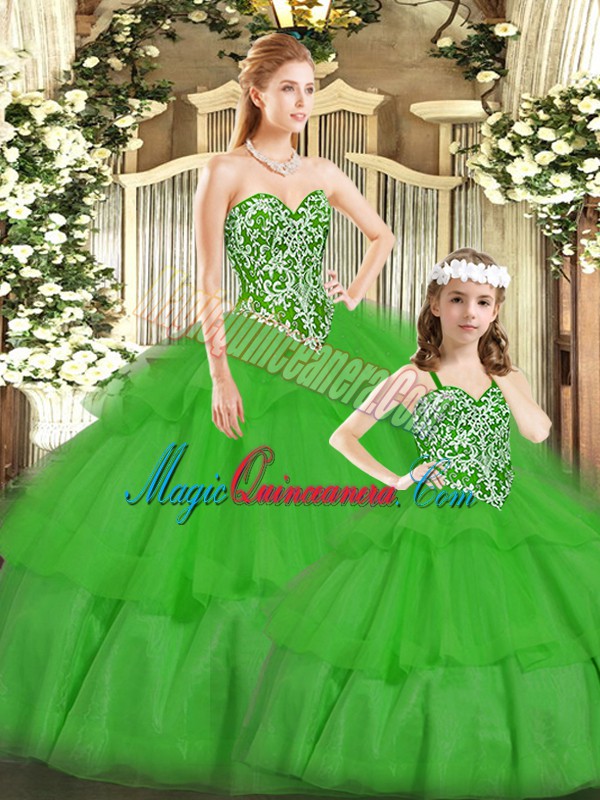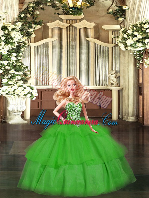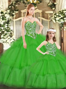 High Class Green Vestidos de Quinceanera Military Ball and Sweet 16 and Quinceanera with Beading Sweetheart Sleeveless Lace Up