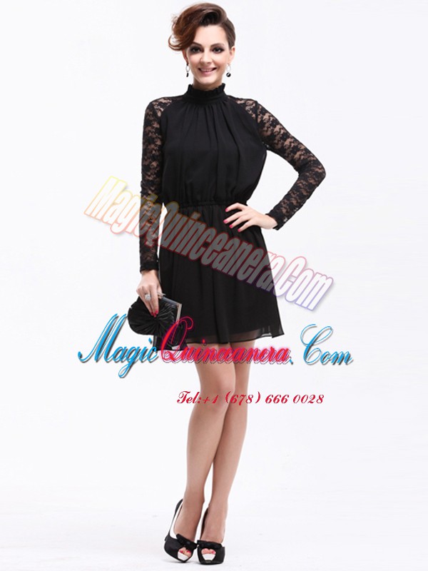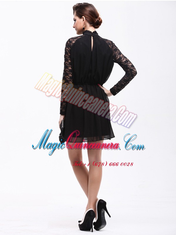 High Class Knee Length Black Mother Of The Bride Dress High-neck Sleeveless Zipper