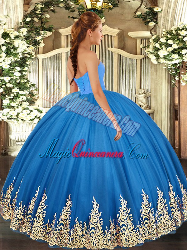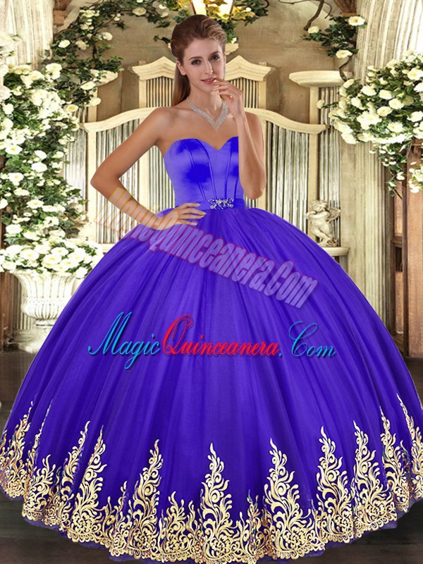 High Class Lavender Ball Gowns Tulle Sweetheart Sleeveless Appliques Floor Length Lace Up Sweet 16 Quinceanera Dress