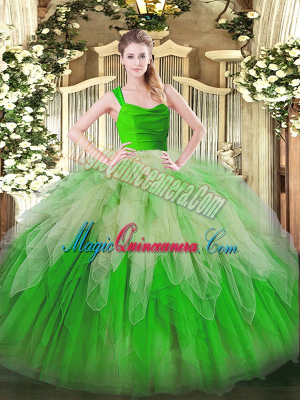 High Class Sleeveless Zipper Floor Length Lace and Ruffles Vestidos de Quinceanera
