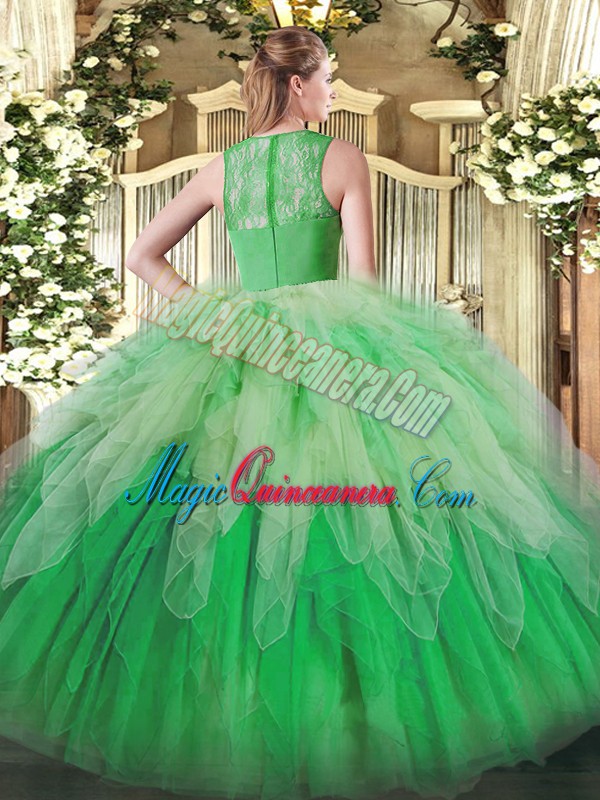 , High Class Sleeveless Zipper Floor Length Lace and Ruffles Vestidos de Quinceanera
