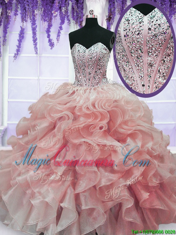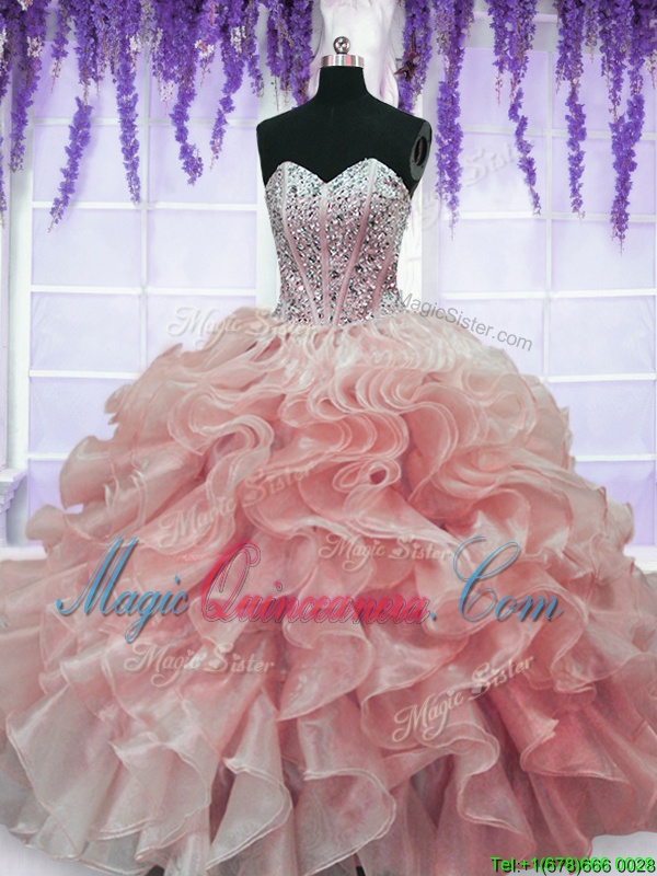 High End Ball Gowns Quinceanera Gown Watermelon Red Sweetheart Organza Sleeveless Floor Length Lace Up