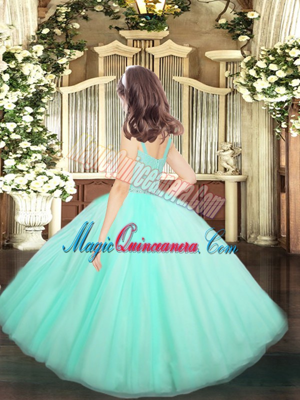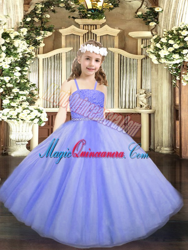 High End Floor Length Lavender Pageant Dress for Girls Straps Sleeveless Zipper
