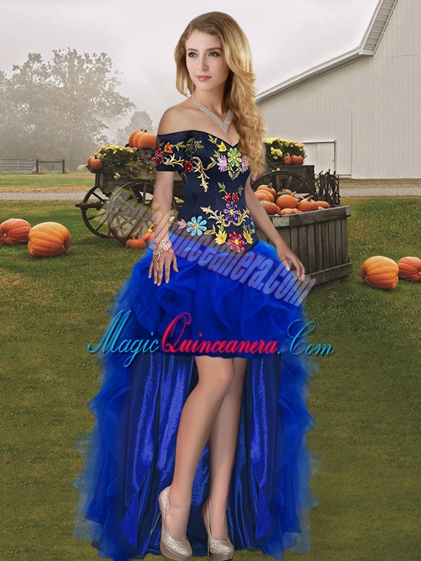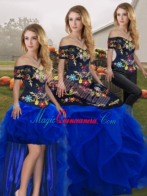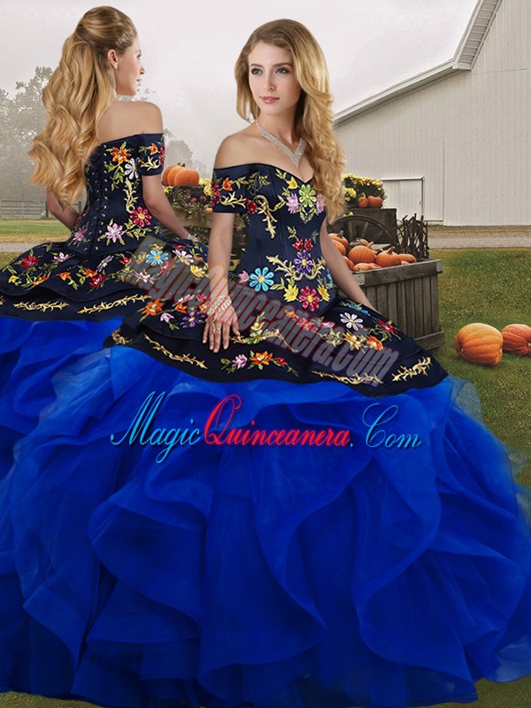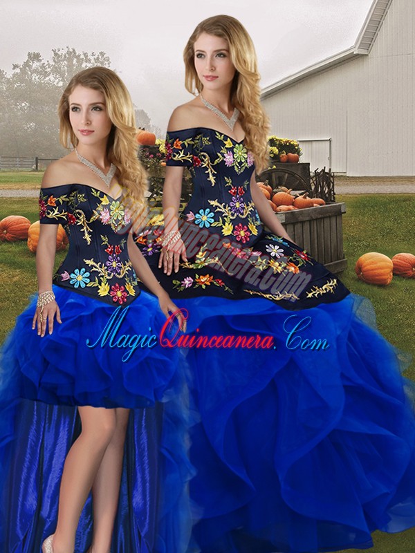 , High End Sleeveless Embroidery and Ruffles Lace Up Vestidos de Quinceanera