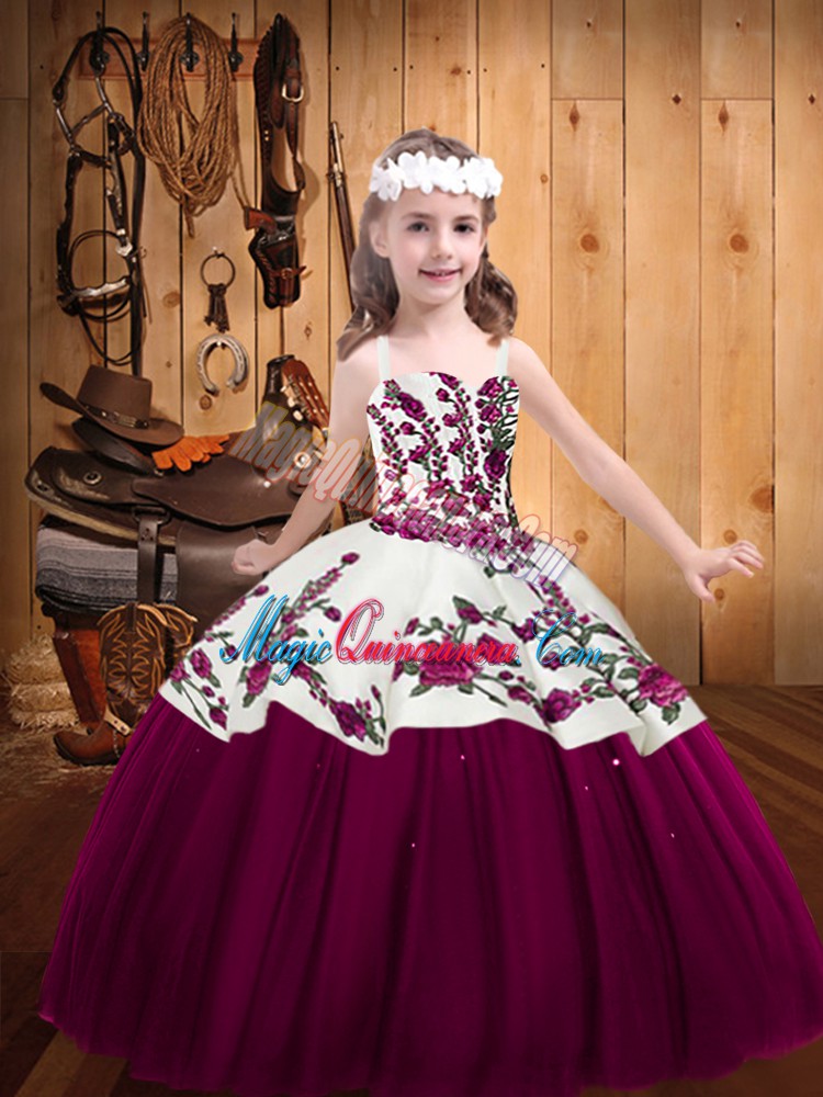 , High End Straps Sleeveless Tulle Pageant Dress for Womens Embroidery Lace Up