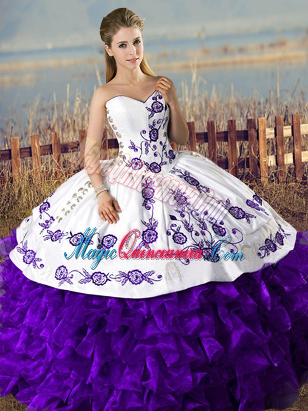 High Quality Floor Length Ball Gowns Sleeveless White And Purple Quinceanera Gown Lace Up - Magic Quinceanera