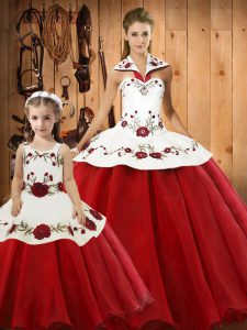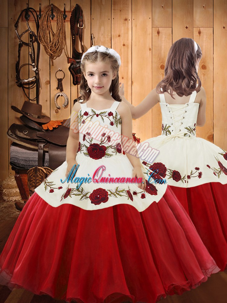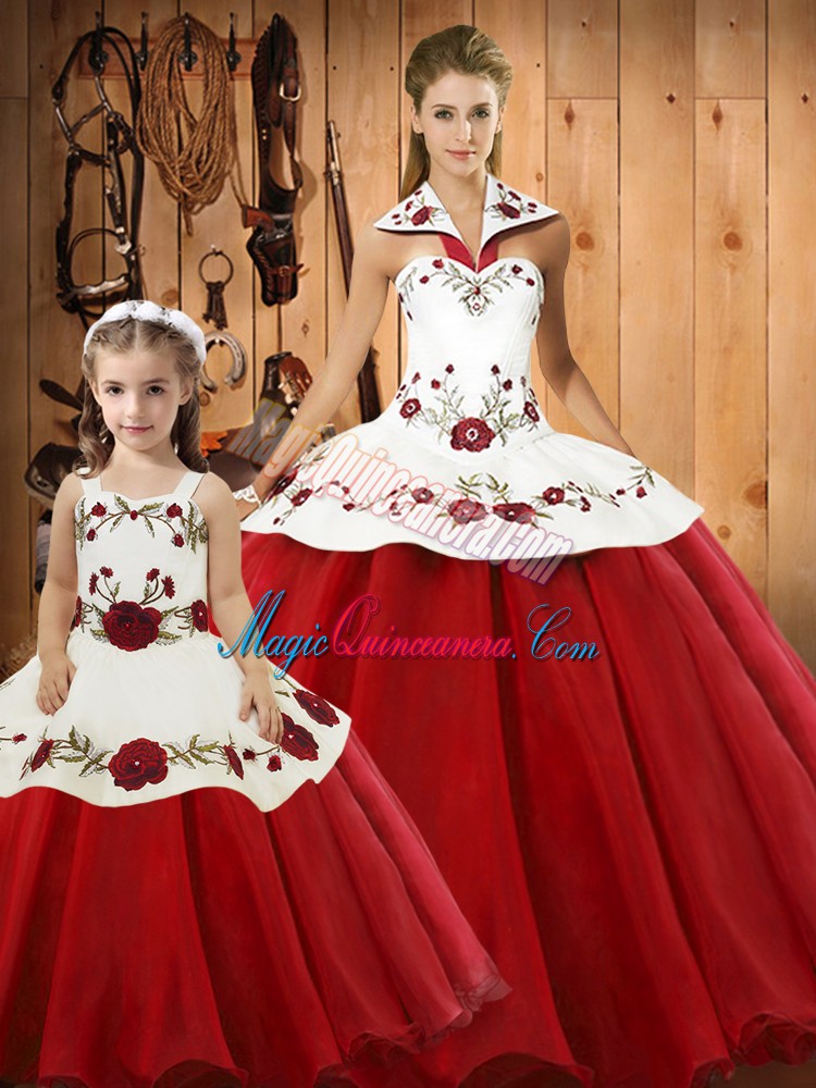 , High Quality Sleeveless Embroidery Lace Up Quinceanera Gowns