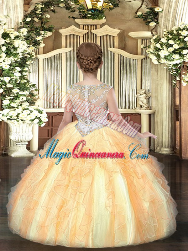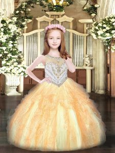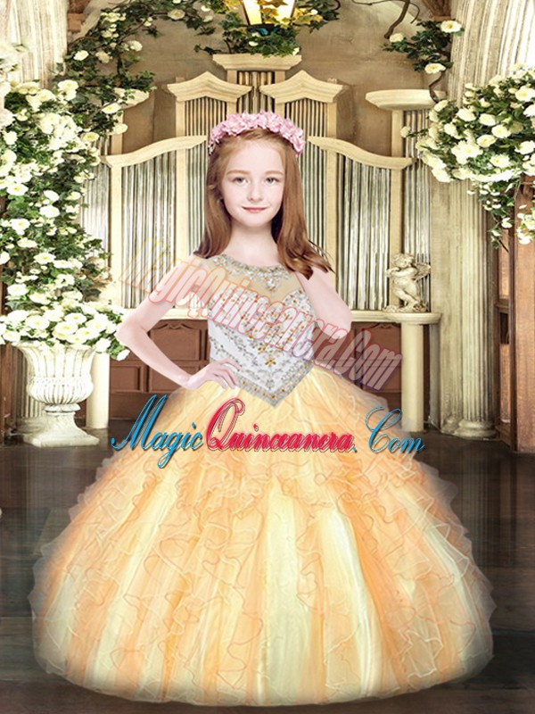 High Quality Sleeveless Zipper Floor Length Beading and Ruffles Pageant Dress for Womens