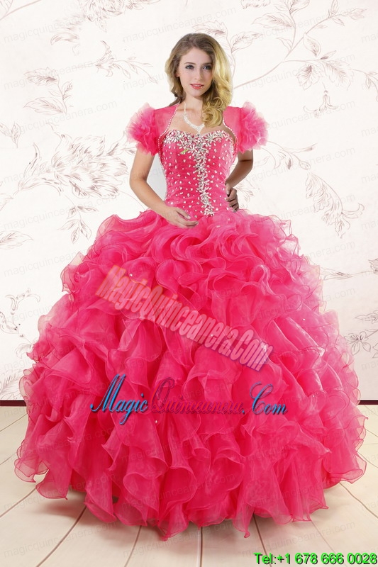 Hot Pink Ruffles and Beaded Wonderful Quinceanera Dresses for 2015