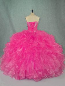 Hot Pink Sleeveless Beading and Ruffles Floor Length Quinceanera Dresses