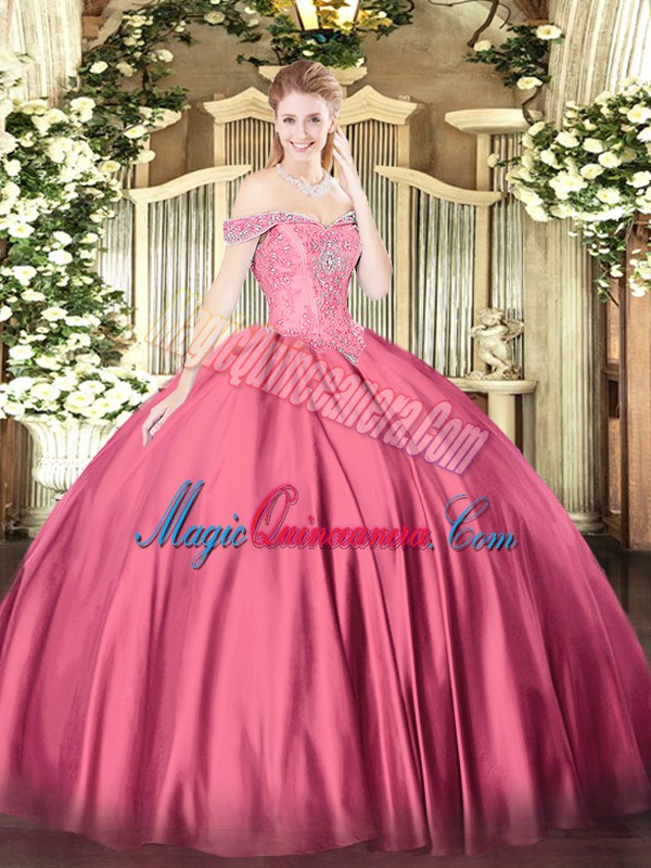 Hot Pink Sleeveless Floor Length Beading Lace Up 15 Quinceanera Dress