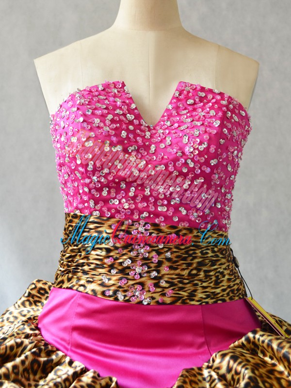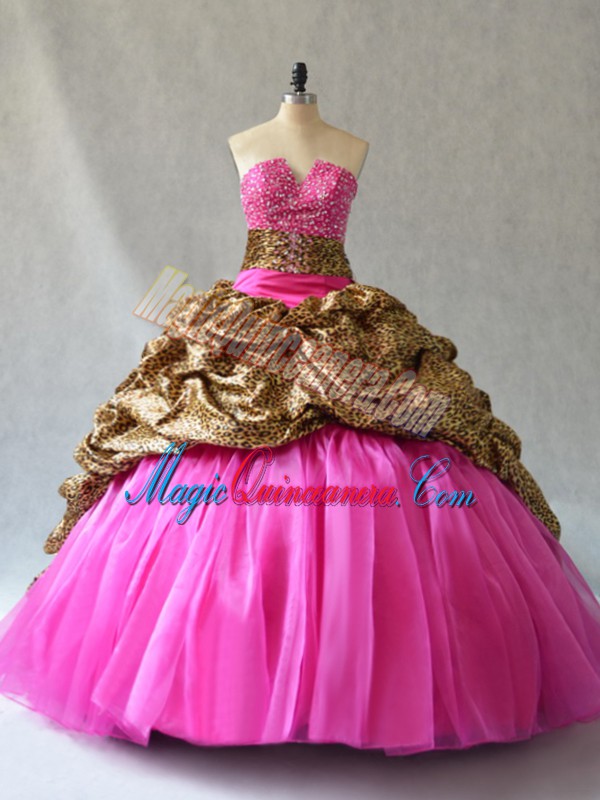 Hot Pink Sleeveless Organza Brush Train Lace Up Quinceanera Dresses for Sweet 16 and Quinceanera - Magic Quinceanera