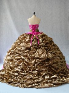 Hot Pink Sleeveless Organza Brush Train Lace Up Quinceanera Dresses for Sweet 16 and Quinceanera