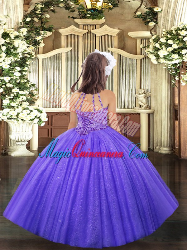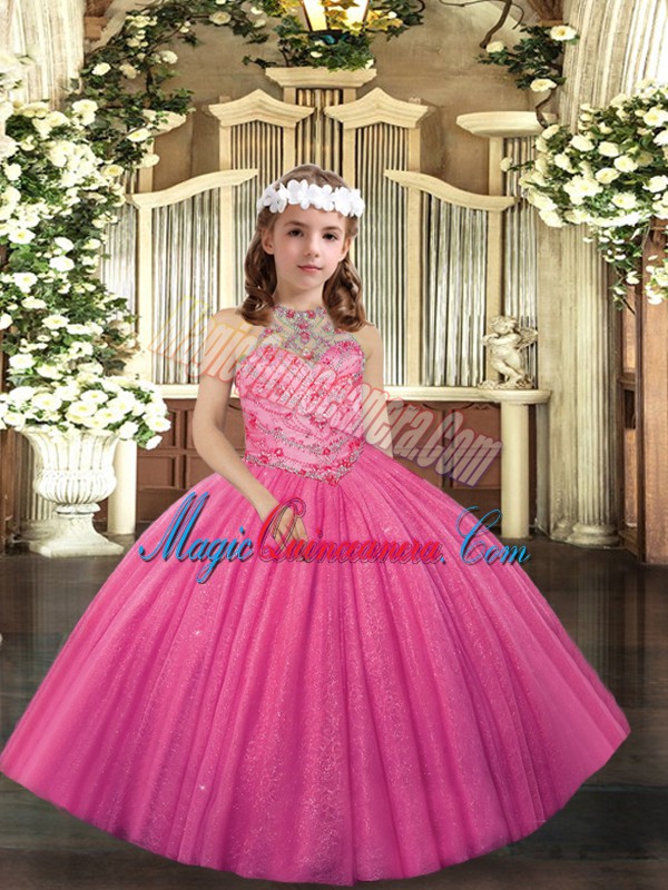 Hot Pink Sleeveless Tulle Lace Up Kids Formal Wear for Party and Wedding Party
