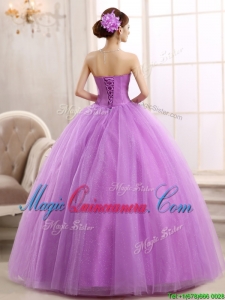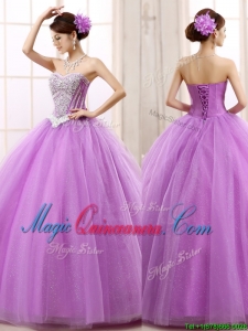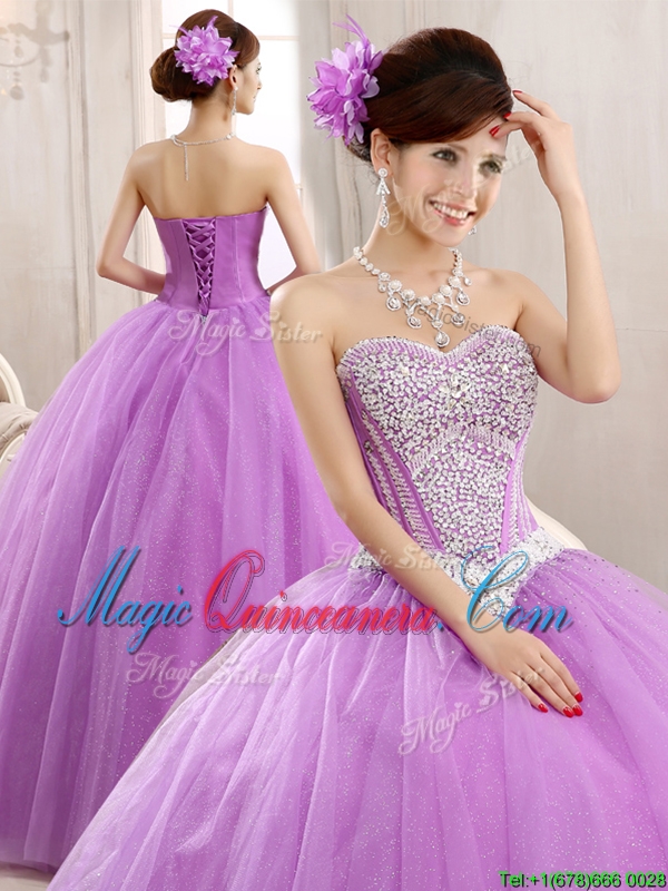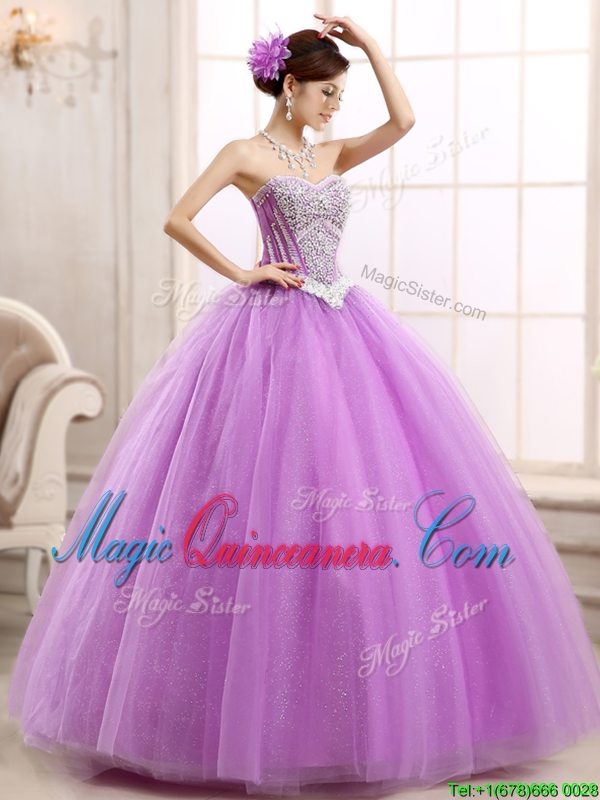 Hot Sale Lilac Really Puffy Tulle Quinceanera Dress with Beading