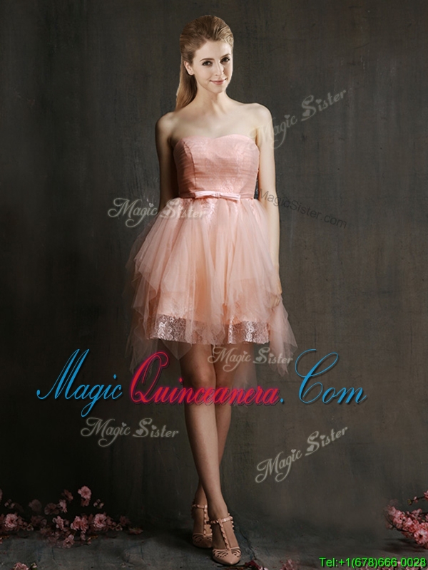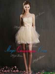 , Hot Sale Mini Length Tulle Dama Dress with Belt