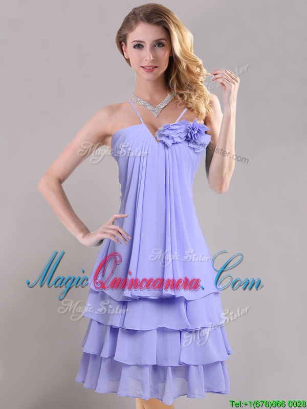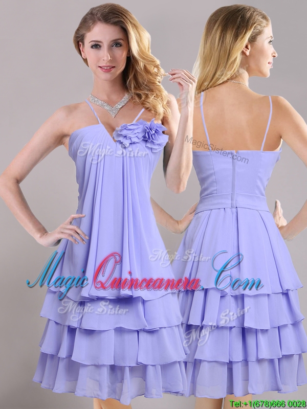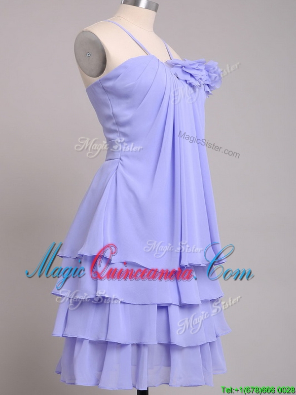 Hot Sale Ruffled Layers and Handcrafted Flower Dama Dress in Lavender