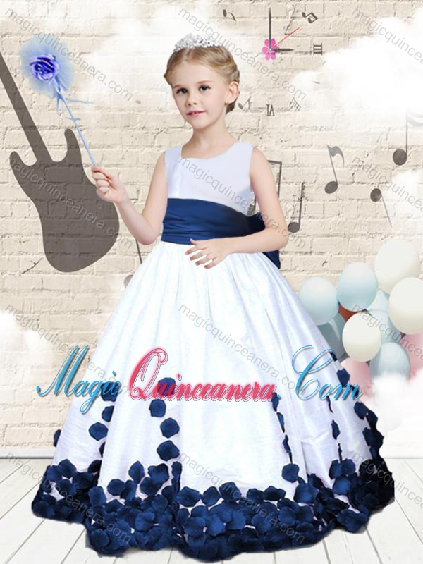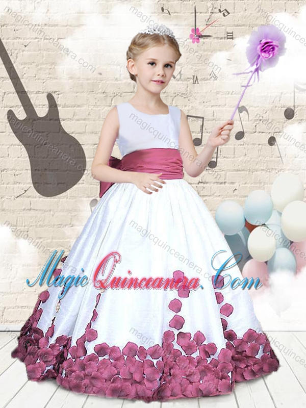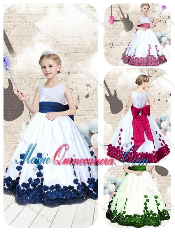 Hot Sale Scoop Long Little Girl Pageant Dresses with Bowknot