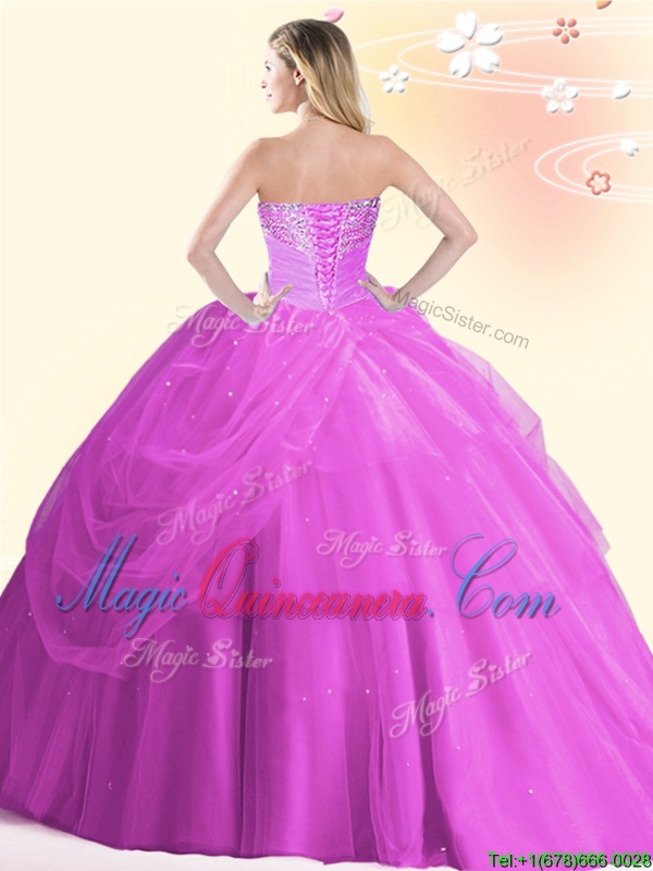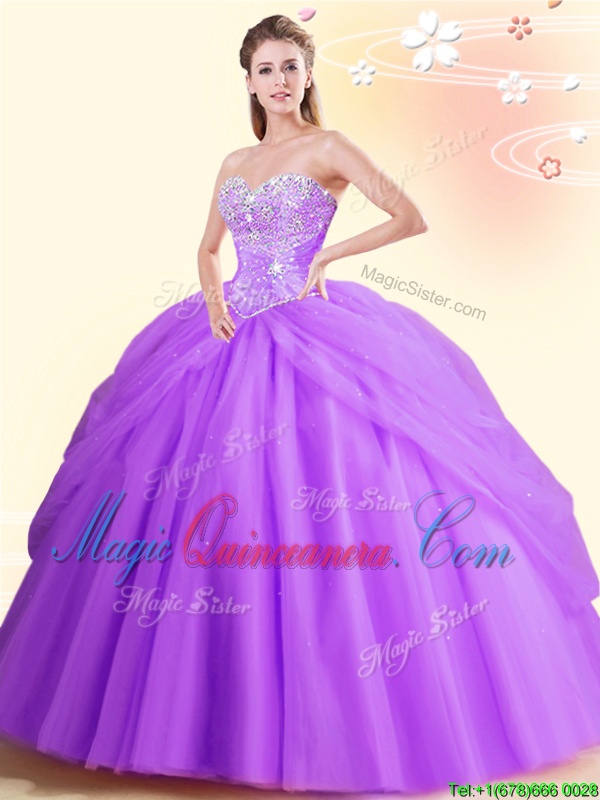 Hot Sale Sleeveless Floor Length Beading Lace Up Ball Gown Prom Dress with Lilac