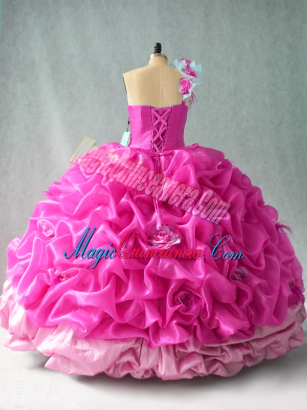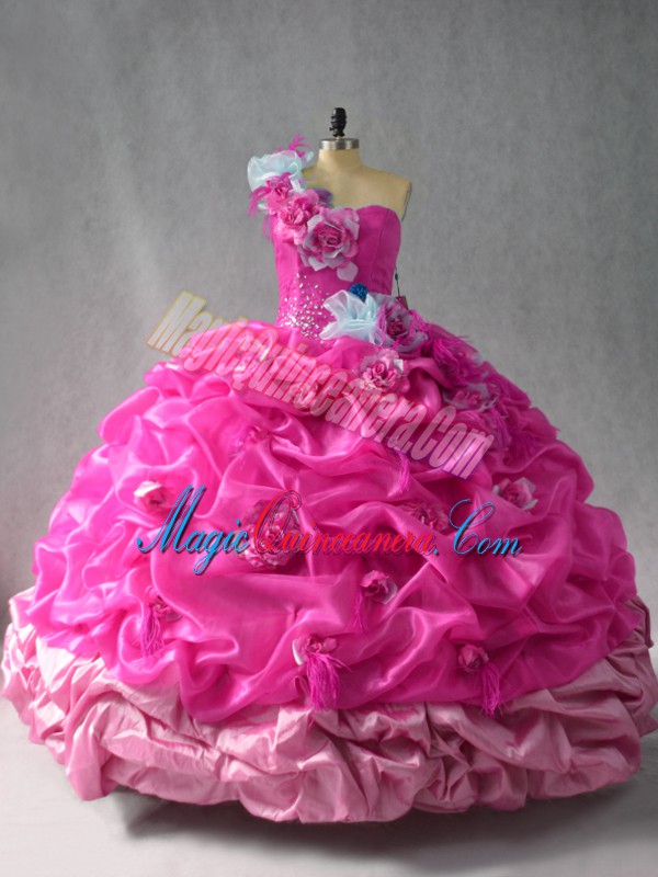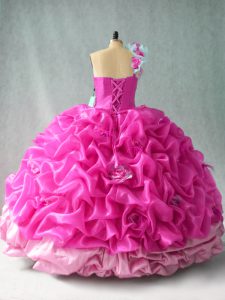 Hot Sale Sleeveless Lace Up Floor Length Pick Ups and Hand Made Flower 15 Quinceanera Dress