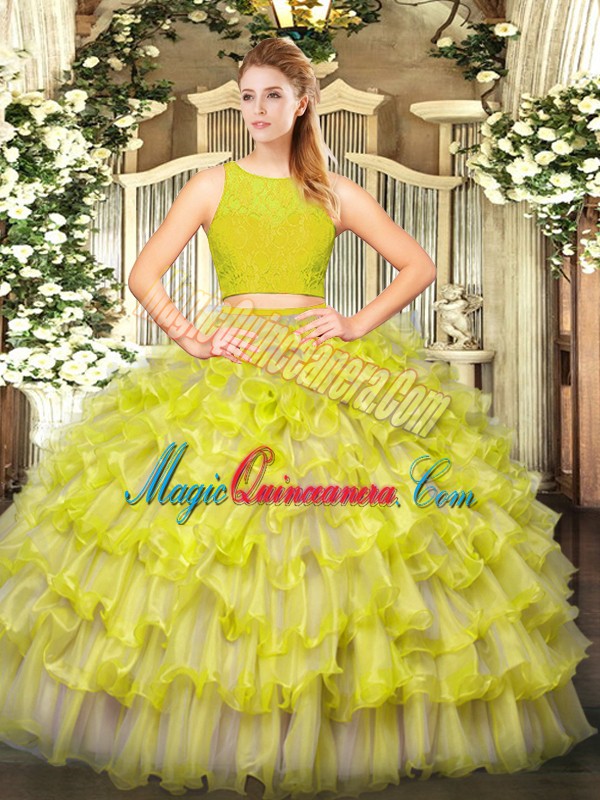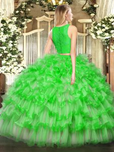 , Hot Sale Tulle Sleeveless Floor Length 15th Birthday Dress and Ruffled Layers