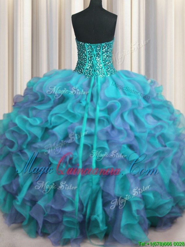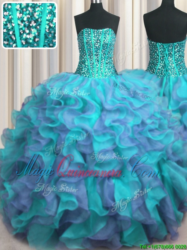 You're reviewing: Hot Sale Visible Boning Beaded Bodice Multi-color Sleeveless Beading and Ruffles Floor Length Sweet 16 Dress