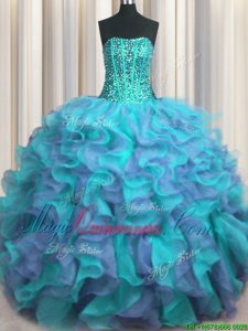 , Hot Sale Visible Boning Beaded Bodice Multi-color Sleeveless Beading and Ruffles Floor Length Sweet 16 Dress