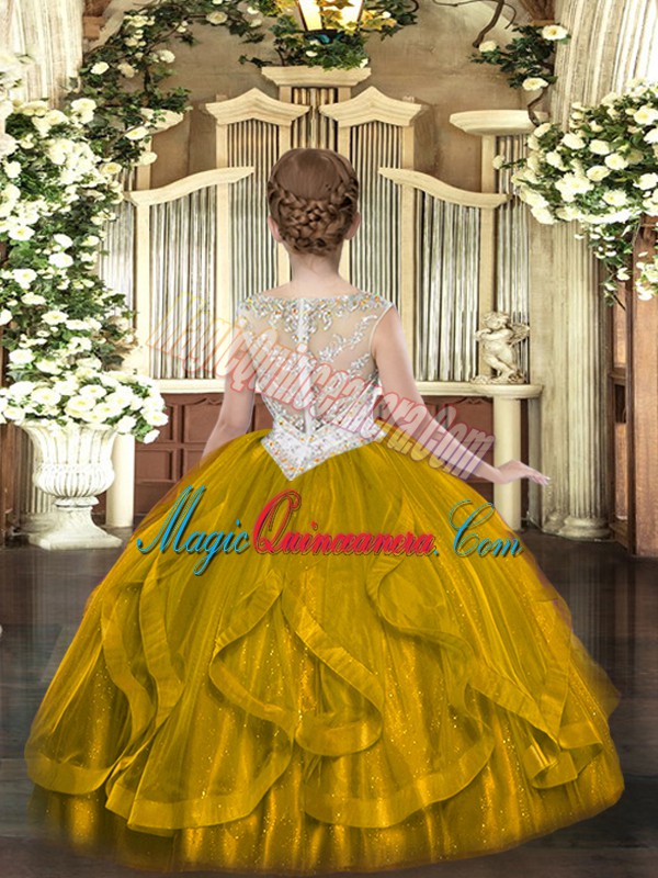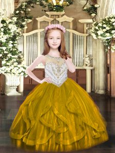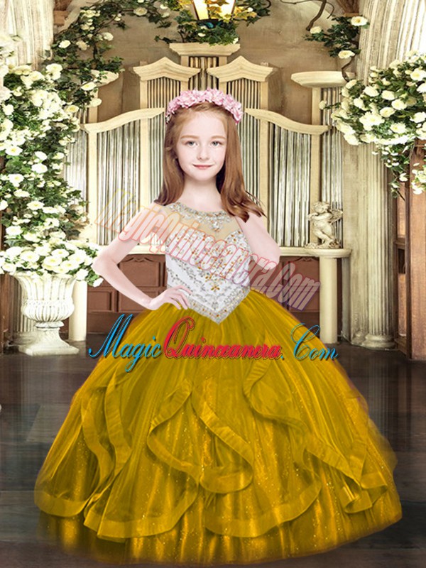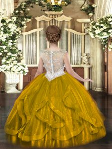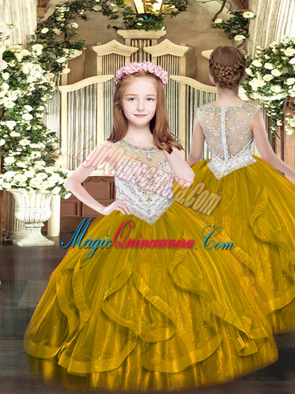 Hot Selling Brown Pageant Gowns Party and Quinceanera with Beading and Ruffles Scoop Sleeveless Zipper