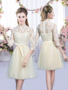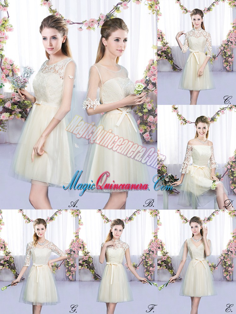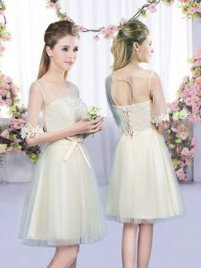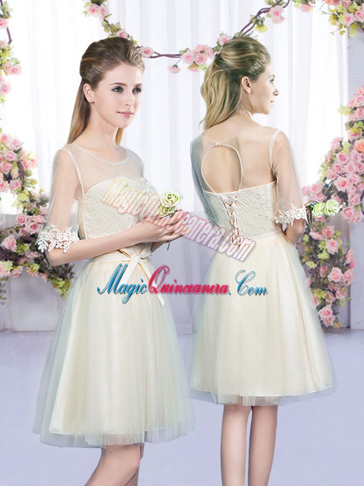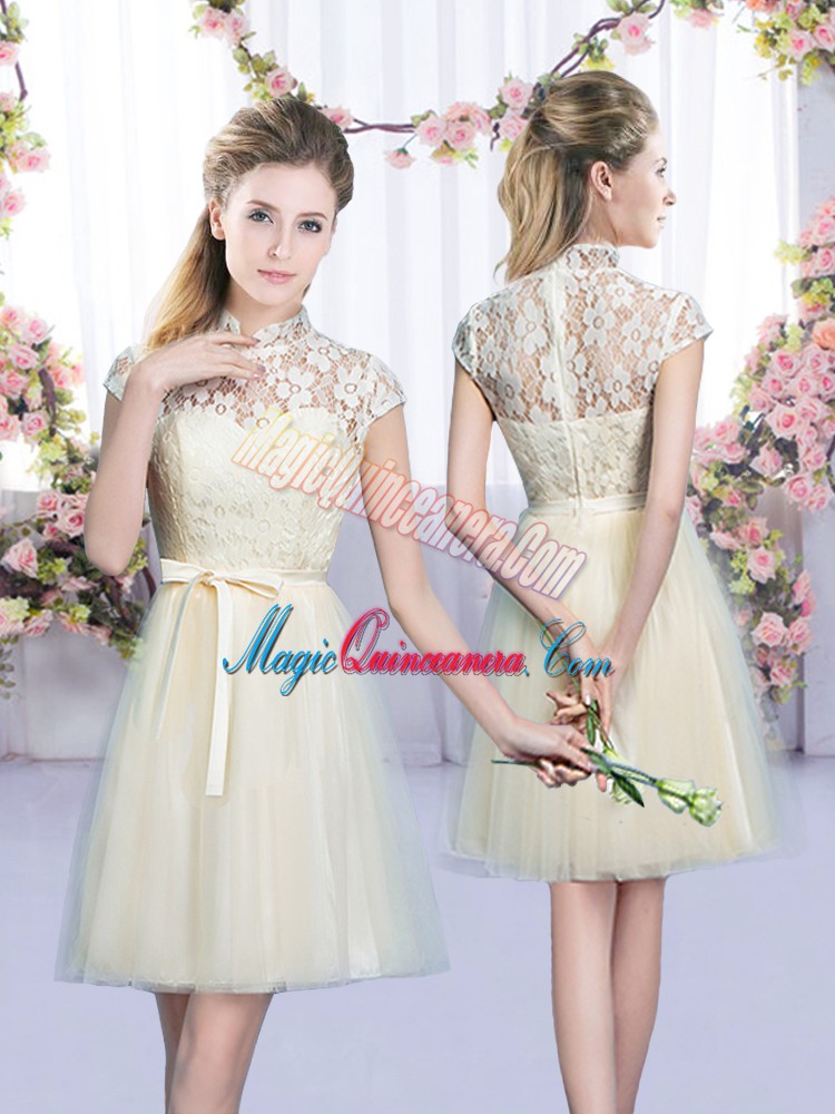 Hot Selling Champagne Empire Lace and Bowknot Dama Dress for Quinceanera Lace Up Tulle Sleeveless Mini Length