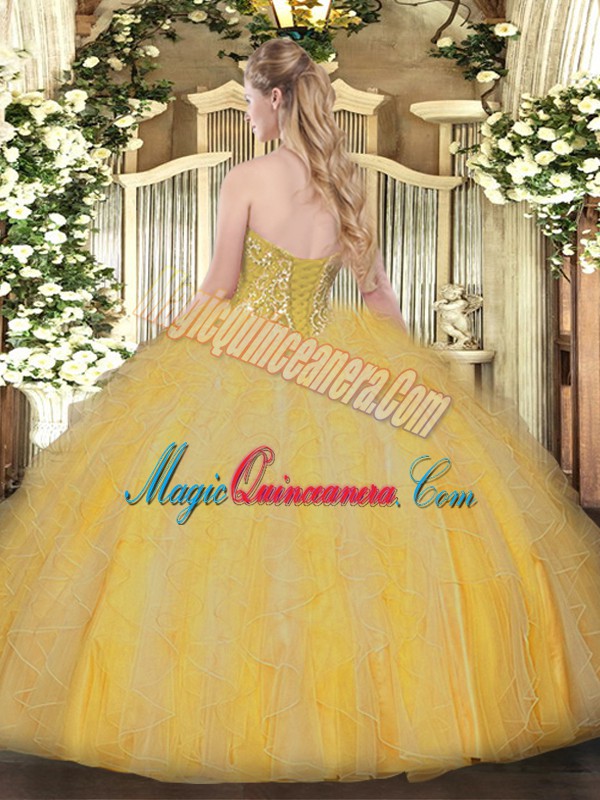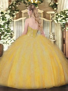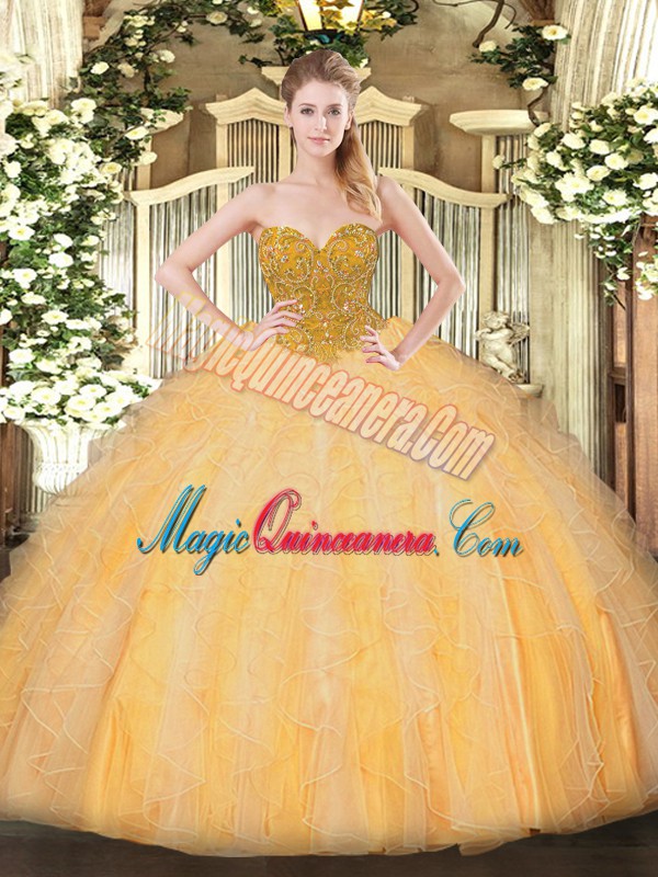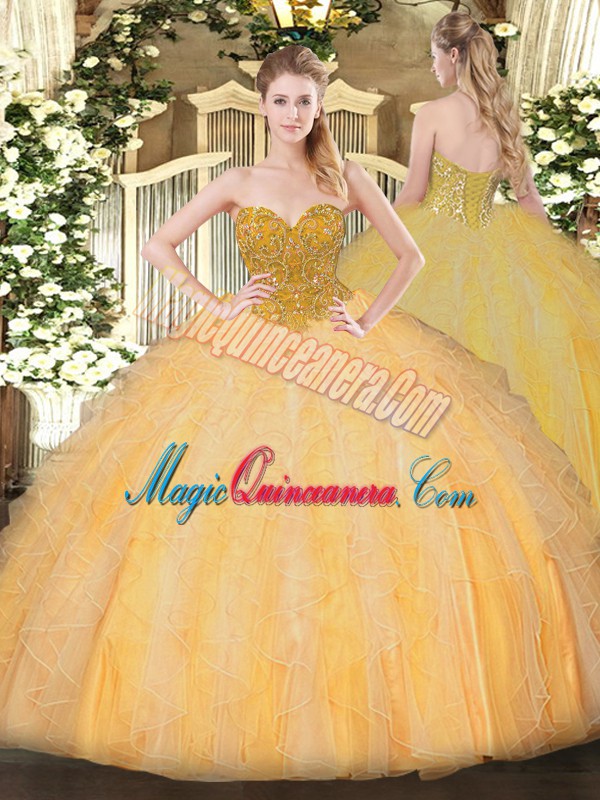 Hot Selling Orange Lace Up Sweet 16 Quinceanera Dress Beading and Ruffles Sleeveless Floor Length