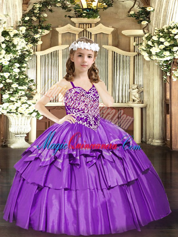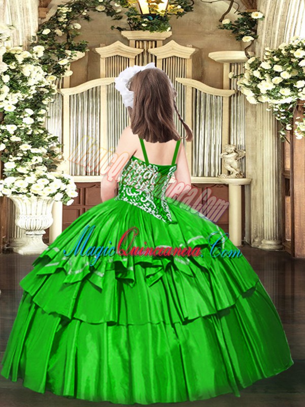 Hot Selling Organza Sleeveless Floor Length Pageant Dress Toddler and Beading and Ruffled Layers