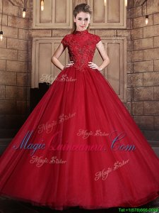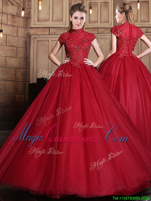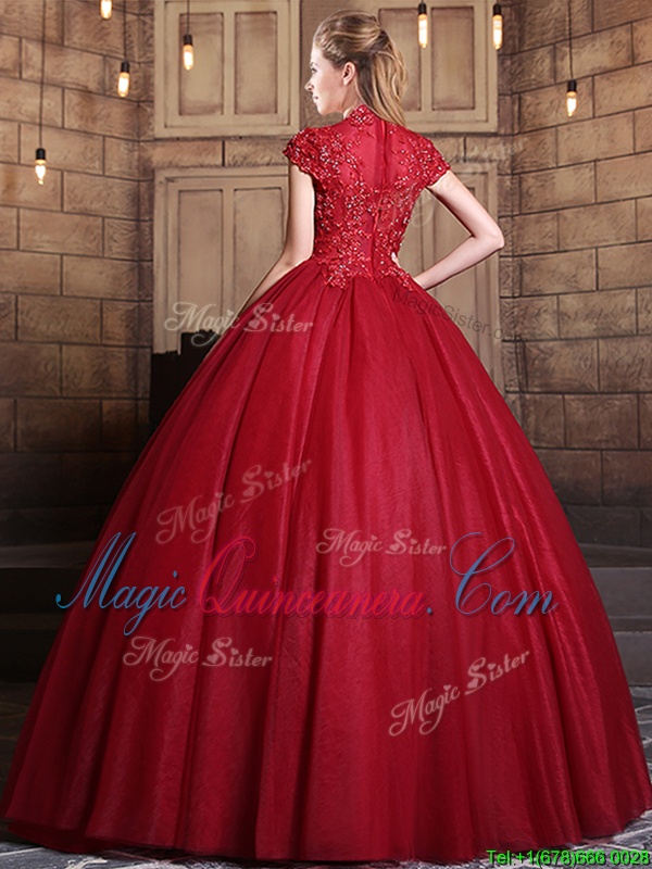 , Hot Selling Short Sleeves Zipper Floor Length Appliques 15th Birthday Dress