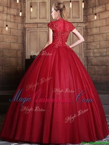 Hot Selling Short Sleeves Zipper Floor Length Appliques 15th Birthday Dress