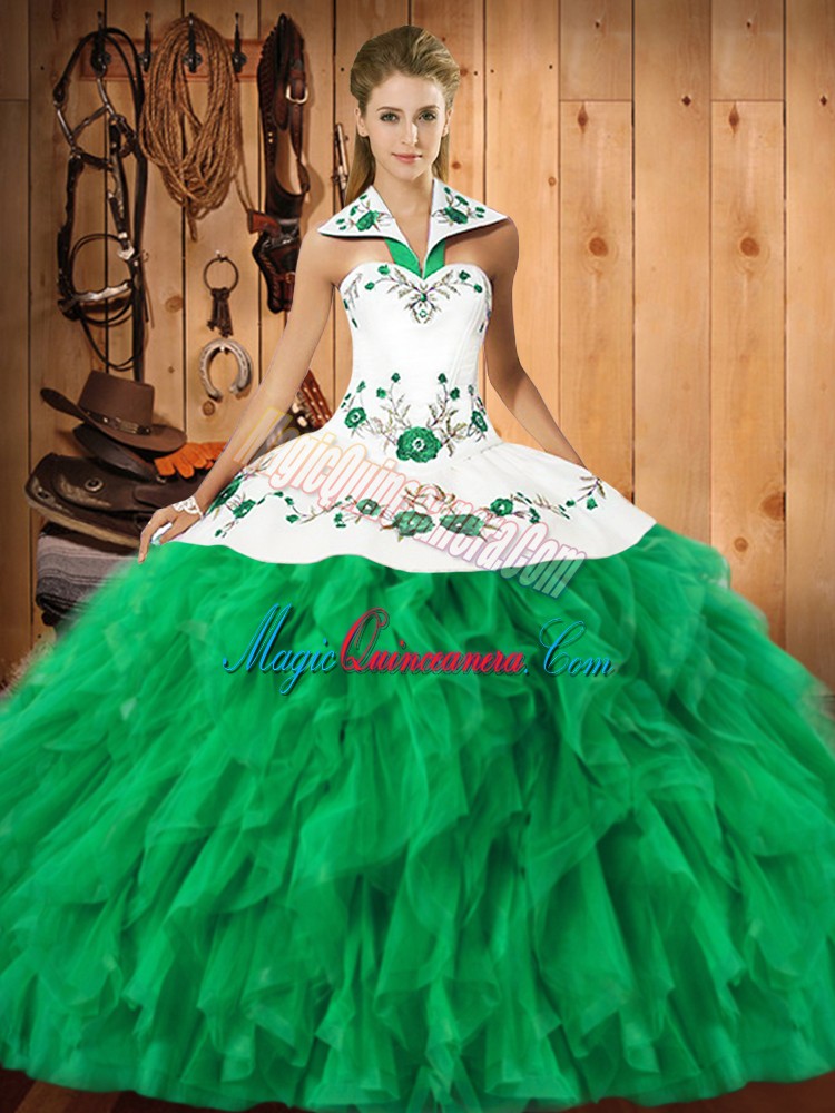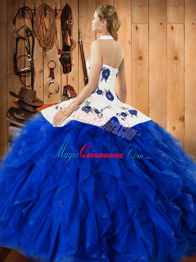 Hot Selling Sleeveless Lace Up Floor Length Embroidery and Ruffles 15 Quinceanera Dress