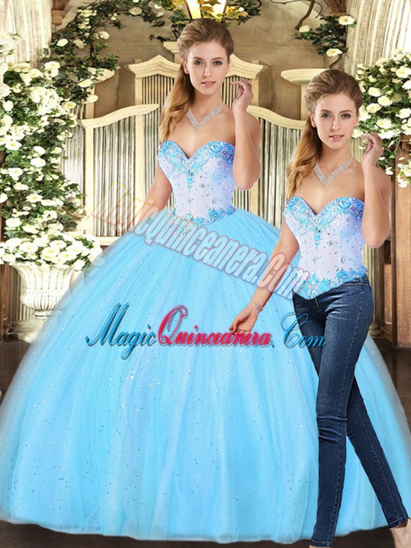 , Hot Selling Tulle Sleeveless Floor Length Sweet 16 Dresses and Beading