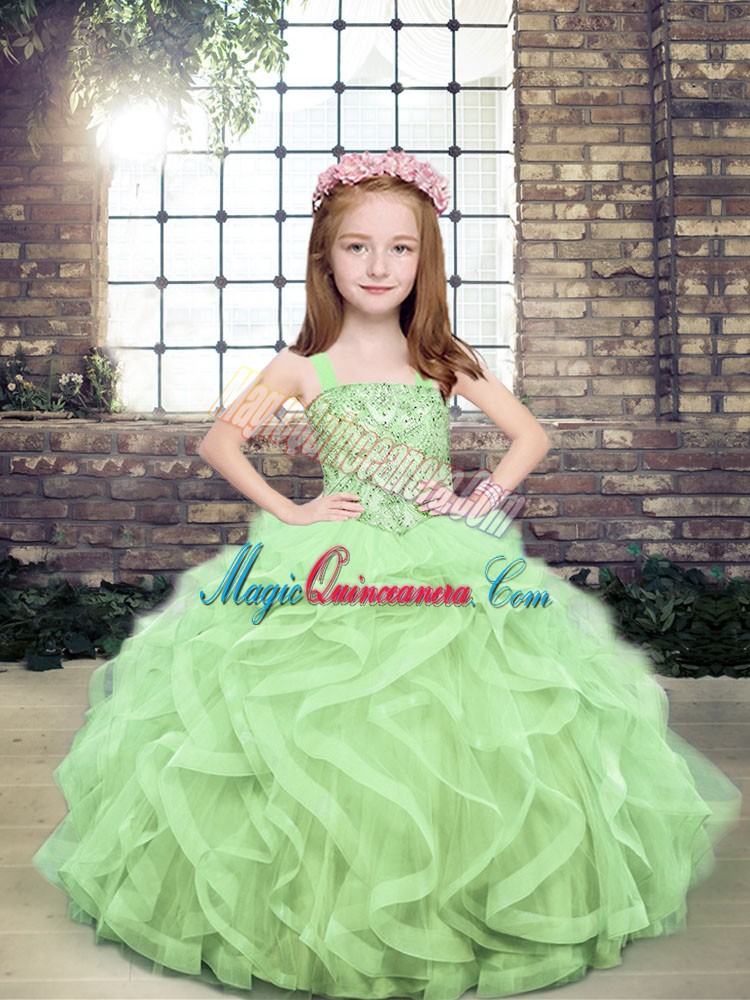 Hot Selling Yellow Green Tulle Lace Up Child Pageant Dress Sleeveless Floor Length Beading and Ruffles