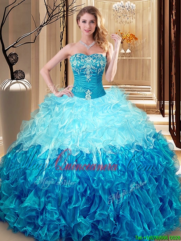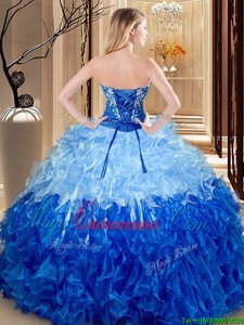 Ideal Multi-color Quince Ball Gowns Military Ball and Sweet 16 and Quinceanera and For with Embroidery and Ruffles Sweetheart Sleeveless Lace Up