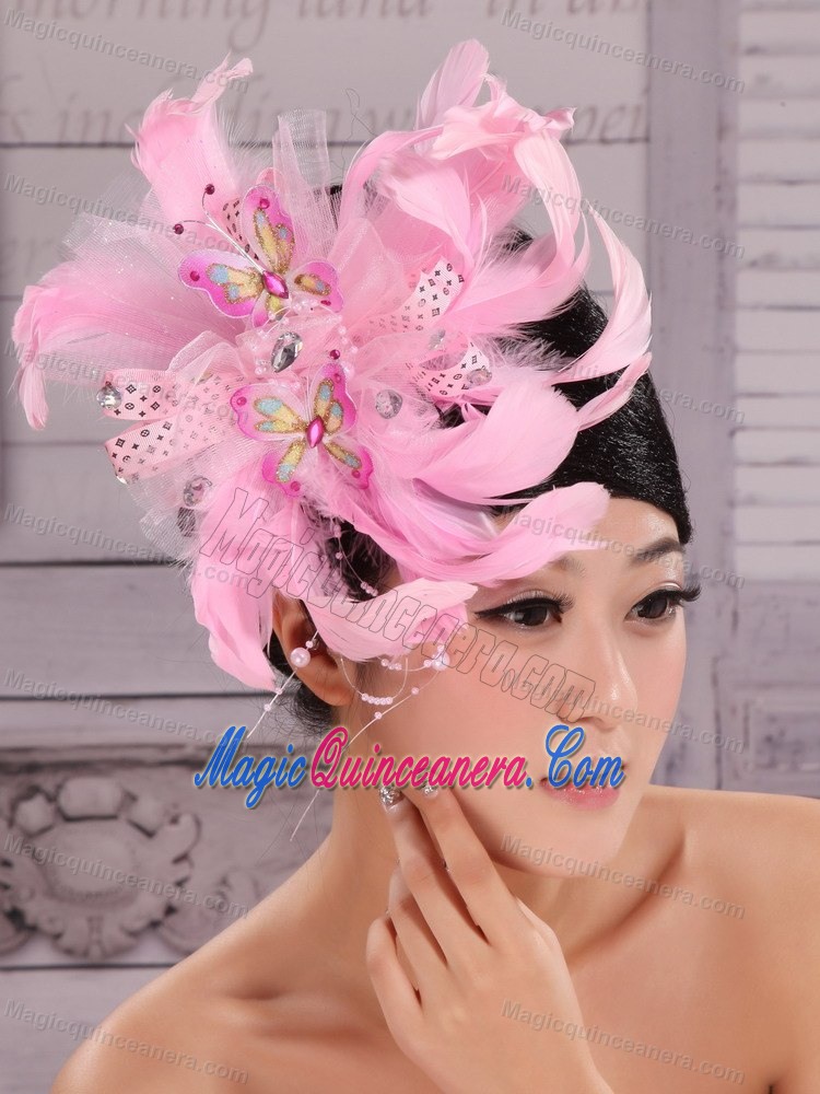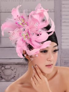 Imitation Pearls and Feather Decorate Tulle and Printing Fabric Headpices For Speciral Occasion Party