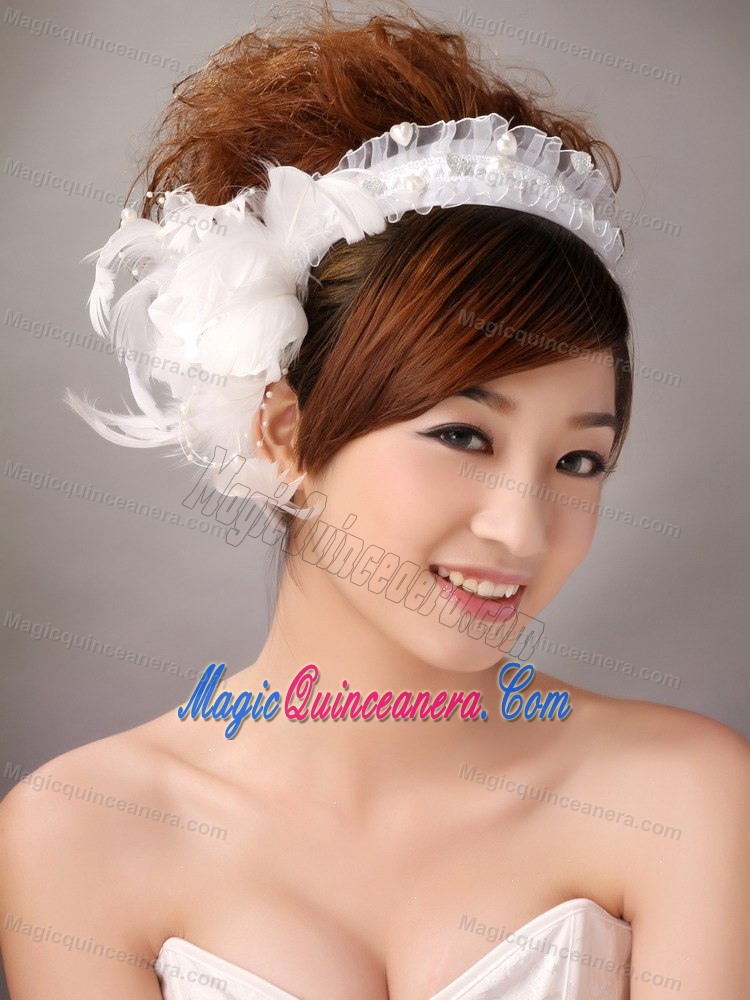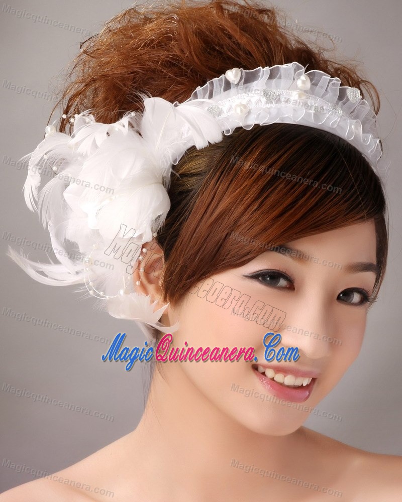 Imitation Pearls White Organza Womens Fascinators