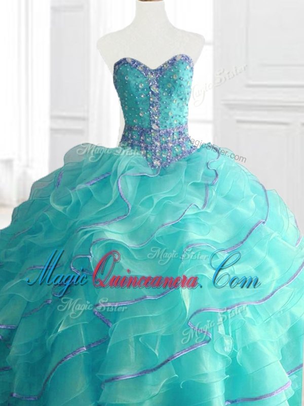 , In Stock Aqua Blue Quinceanera Dresses with Beading and Ruffles