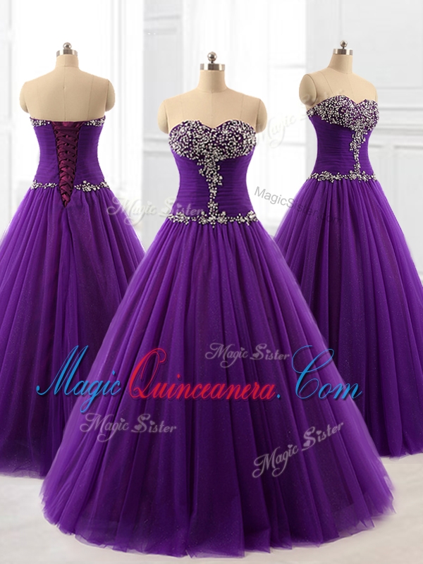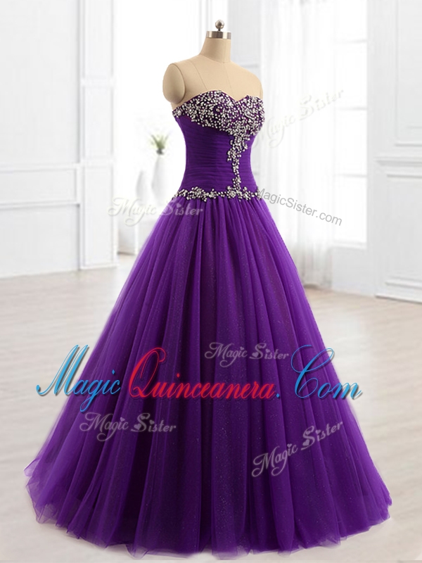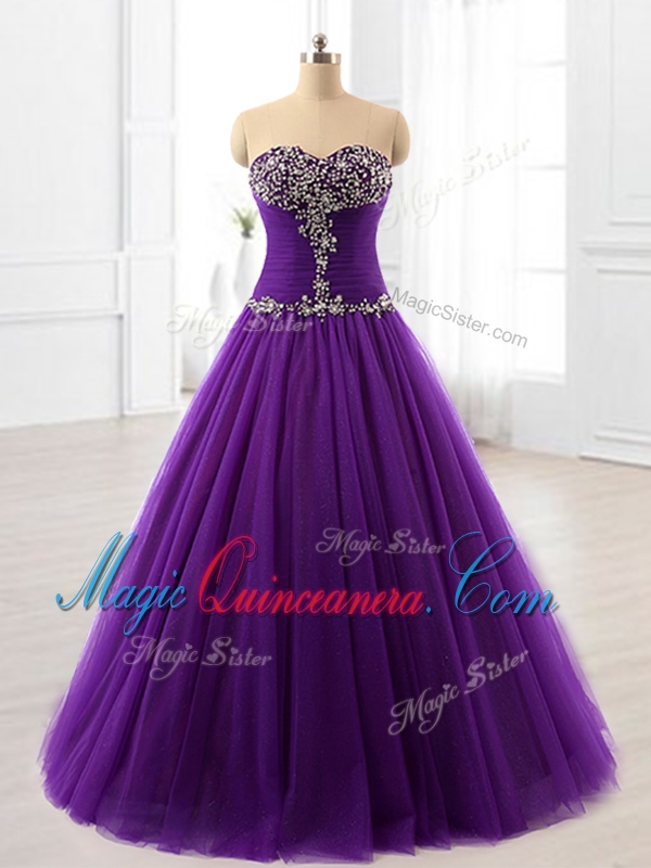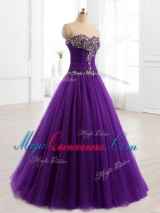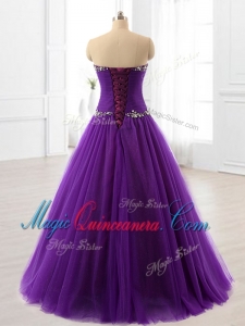 , In Stock Beading A Line Sweet 16 Dresses in Purple