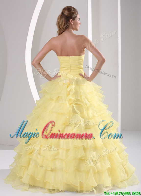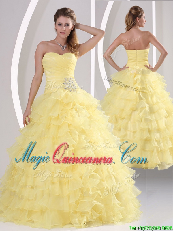 , Inexpensive Appliques and Ruffled Layers Quinceaners Dresses