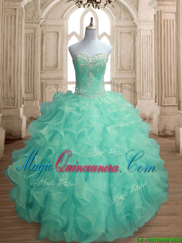 , Inexpensive Beaded and Ruffled Big Puffy Quinceanera Dress in Apple Green