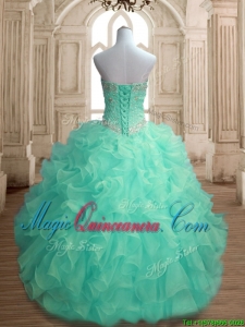 Inexpensive Beaded and Ruffled Big Puffy Quinceanera Dress in Apple Green