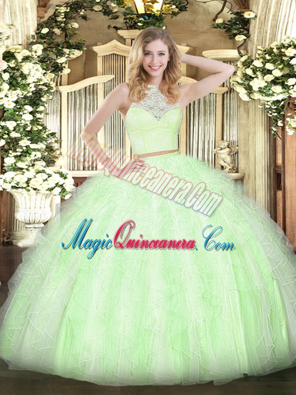 Inexpensive Floor Length Zipper Quinceanera Dress Yellow Green for Military Ball and Sweet 16 and Quinceanera with Lace and Ruffles