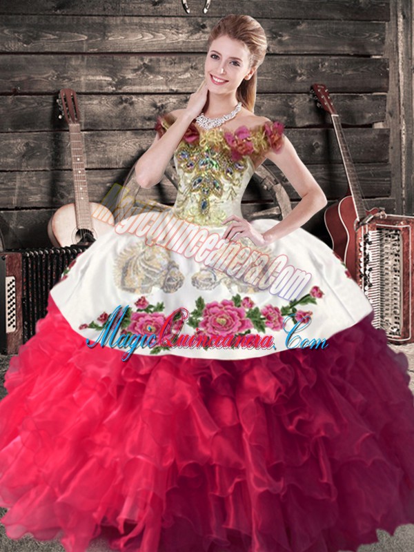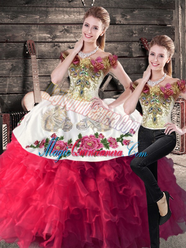 Inexpensive Satin and Organza Sleeveless Floor Length Ball Gown Prom Dress and Embroidery