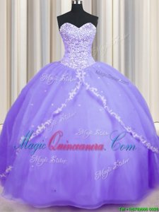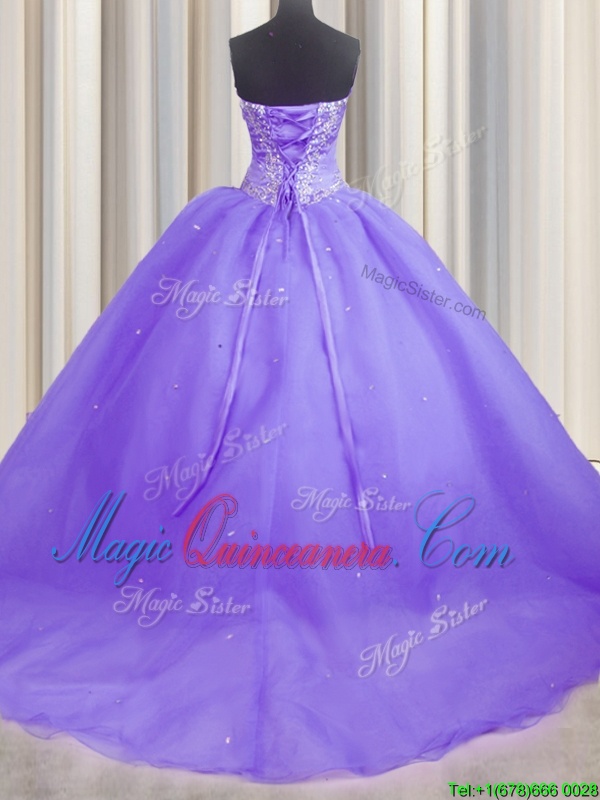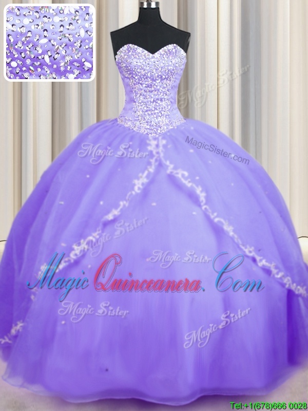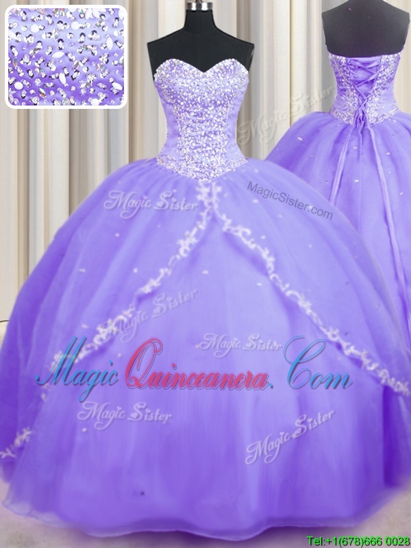 , Inexpensive Sleeveless Brush Train Beading and Appliques Lace Up Quince Ball Gowns
