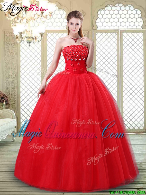 Inexpensive Strapless Quinceanera Dresses with Hand Made Flowers
