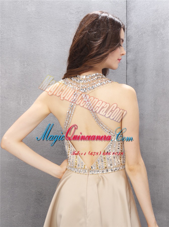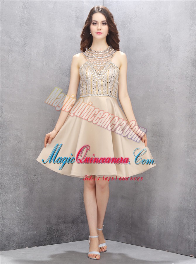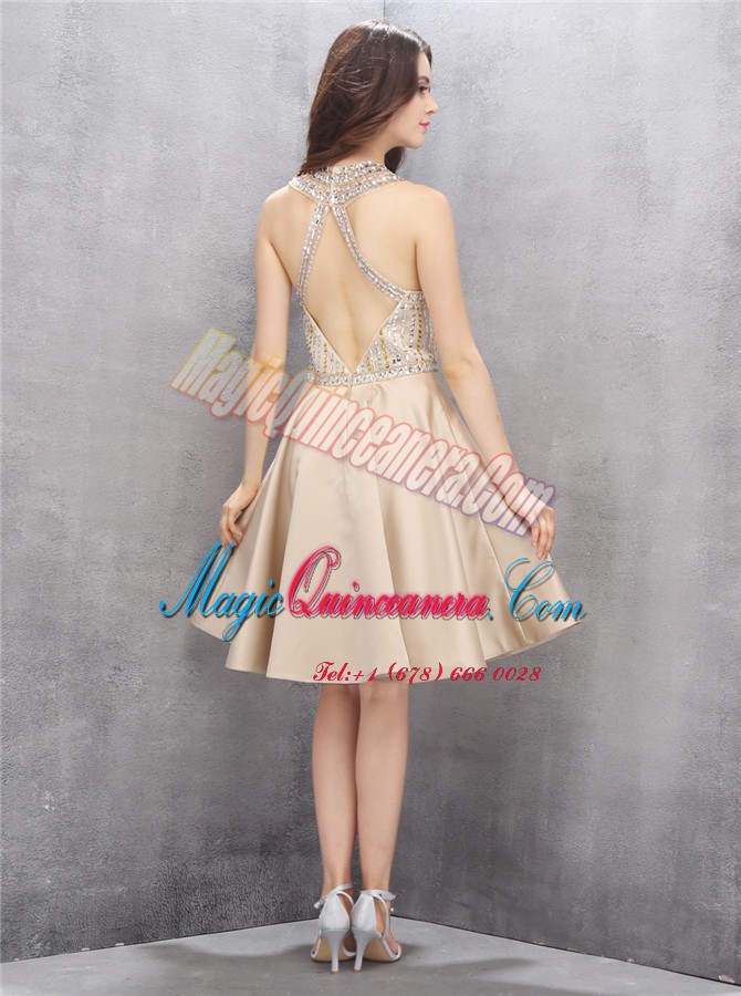 Knee Length A-line Sleeveless Champagne Mother Of The Bride Dress Criss Cross