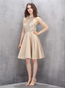 , Knee Length A-line Sleeveless Champagne Mother Of The Bride Dress Criss Cross